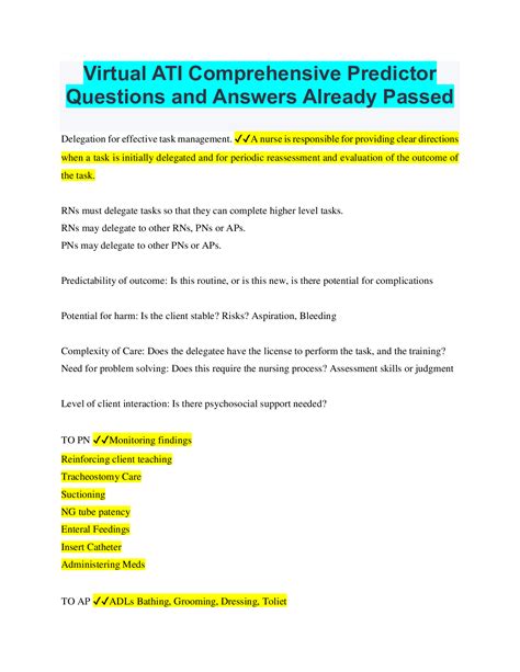 Free PDF Ati comprehensive predictor answers rtf Internet Archive